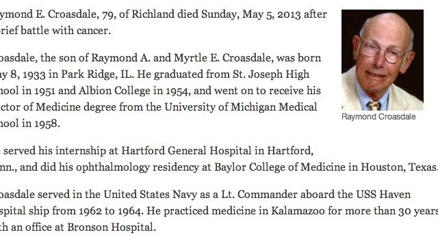 Long-time Idlewild resident Dr. Ray Croasdale passed away earlier this month. A link to his obituary can be found here.